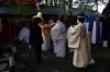 神楽殿では横山巫女さんが訪れた人々に御神酒やお菓子の振る舞いをされていました。