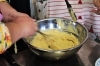 するとこうや豆腐がモコモコとしてきます。先に用意した卵に素早く入れて良くかき混ぜて生地ができました。