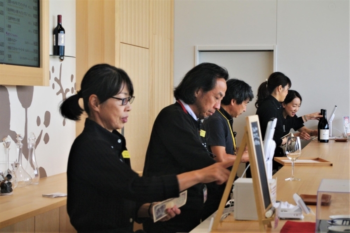 2階のテイスティングカウンターには多くのお客様が並び、シャトー・メルシャンのワインを楽しんでいました。